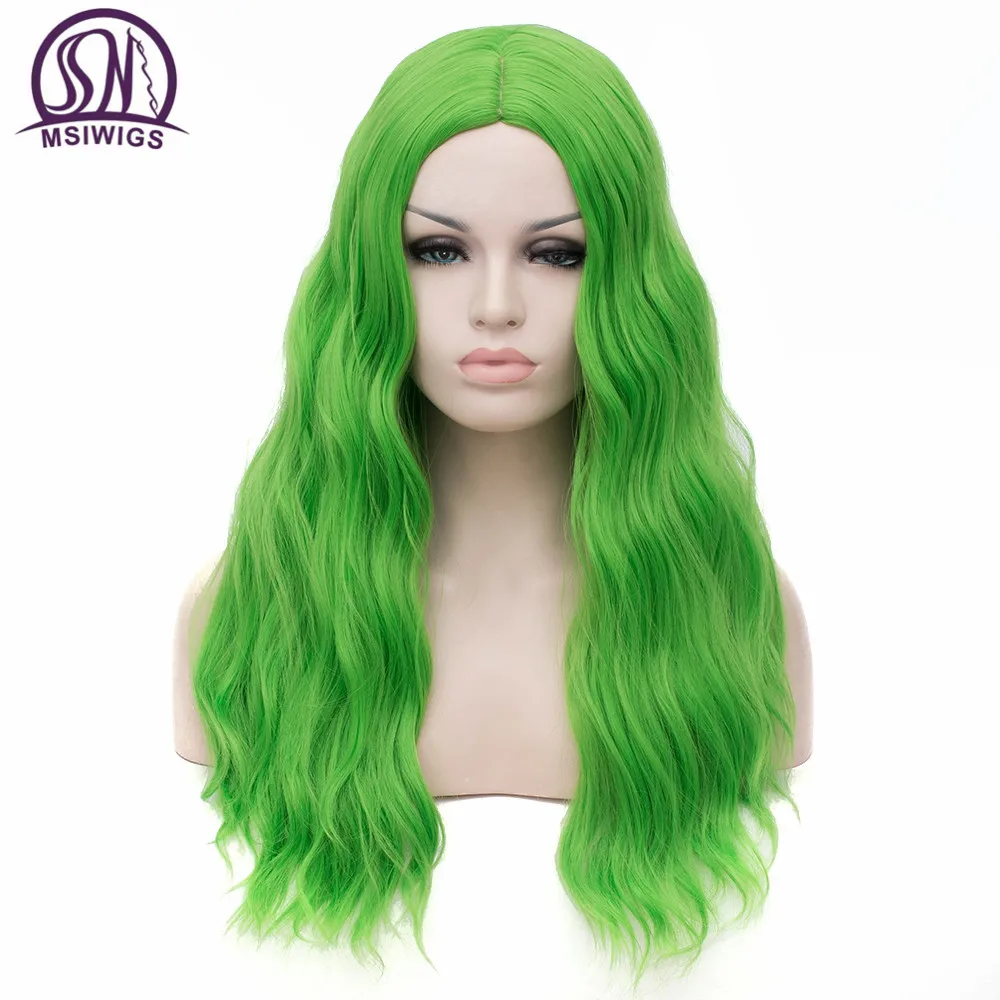 MSIWIGS Wavy Synthetic Wigs for White Black Women Long Green Wig Cosplay Heat Resistant Rose Net Na
