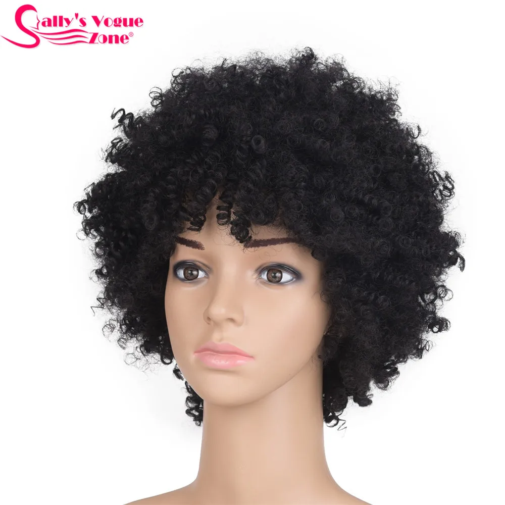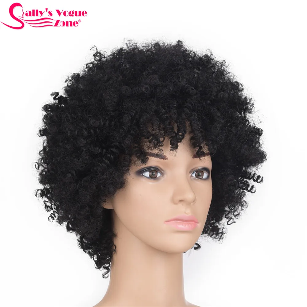 BEST Sallyhair High Temperature Synthetic America Afro Kinky Curly Natural Black Color Short Wig Average