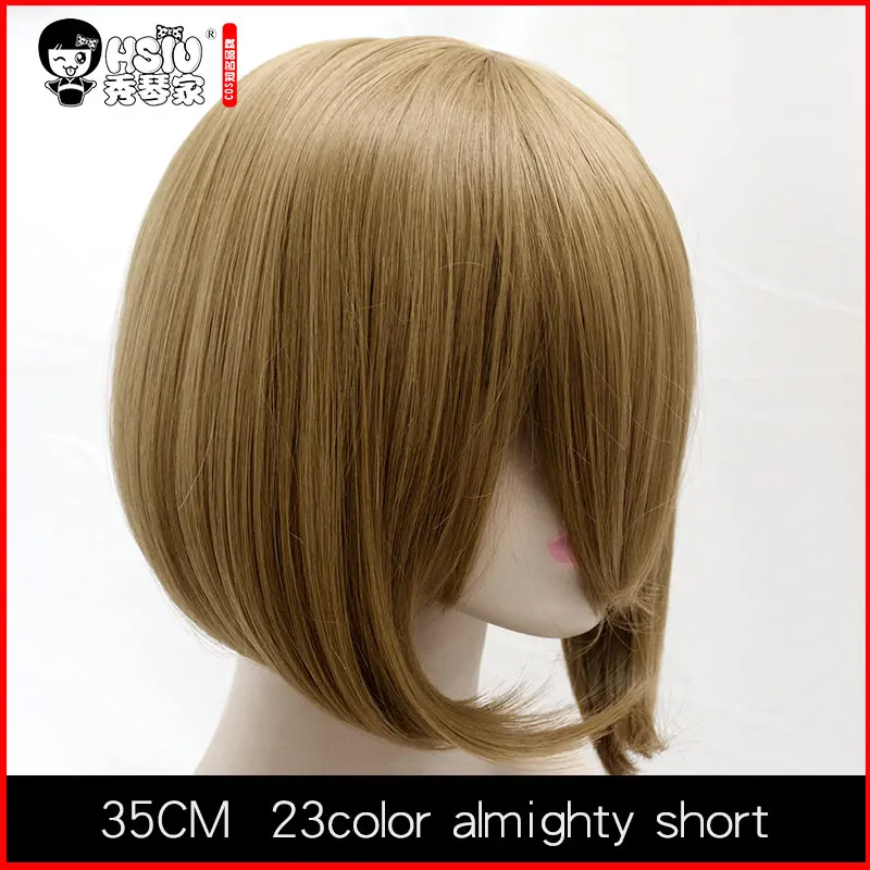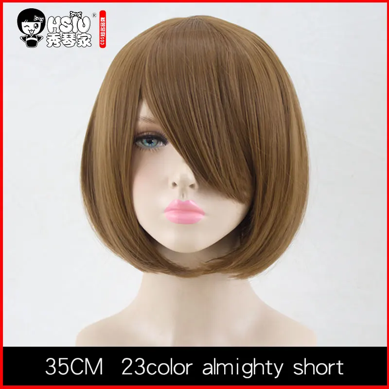 HSIU 35cm short Wig Black white purple blue red yellow high temperature fiber Synthetic Wigs Costum