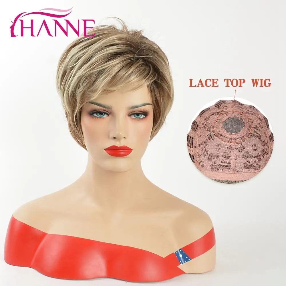 HANNE Mix Brown And Blonde High Temperature Synthetic Hair Wigs Hand Made Top Wig Heat Resistant Af