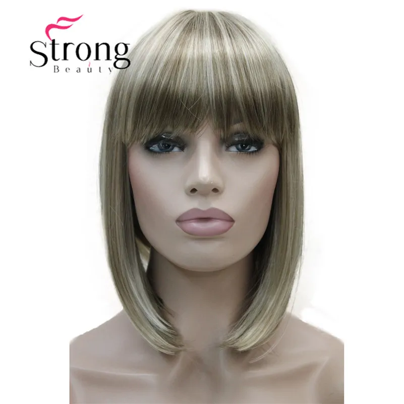 HIGH QUALITY StrongBeauty Short Straight Blonde Highlighted Bob with Bangs Synthetic Wig Black Brown Red Women's