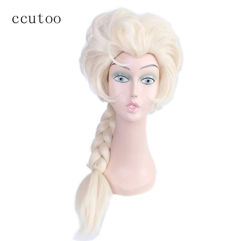 ccutoo 50cm Blonde Long Synthetic Elsa Wig High Temperature Fiber Braid Styled Cosplay Costume Wigs