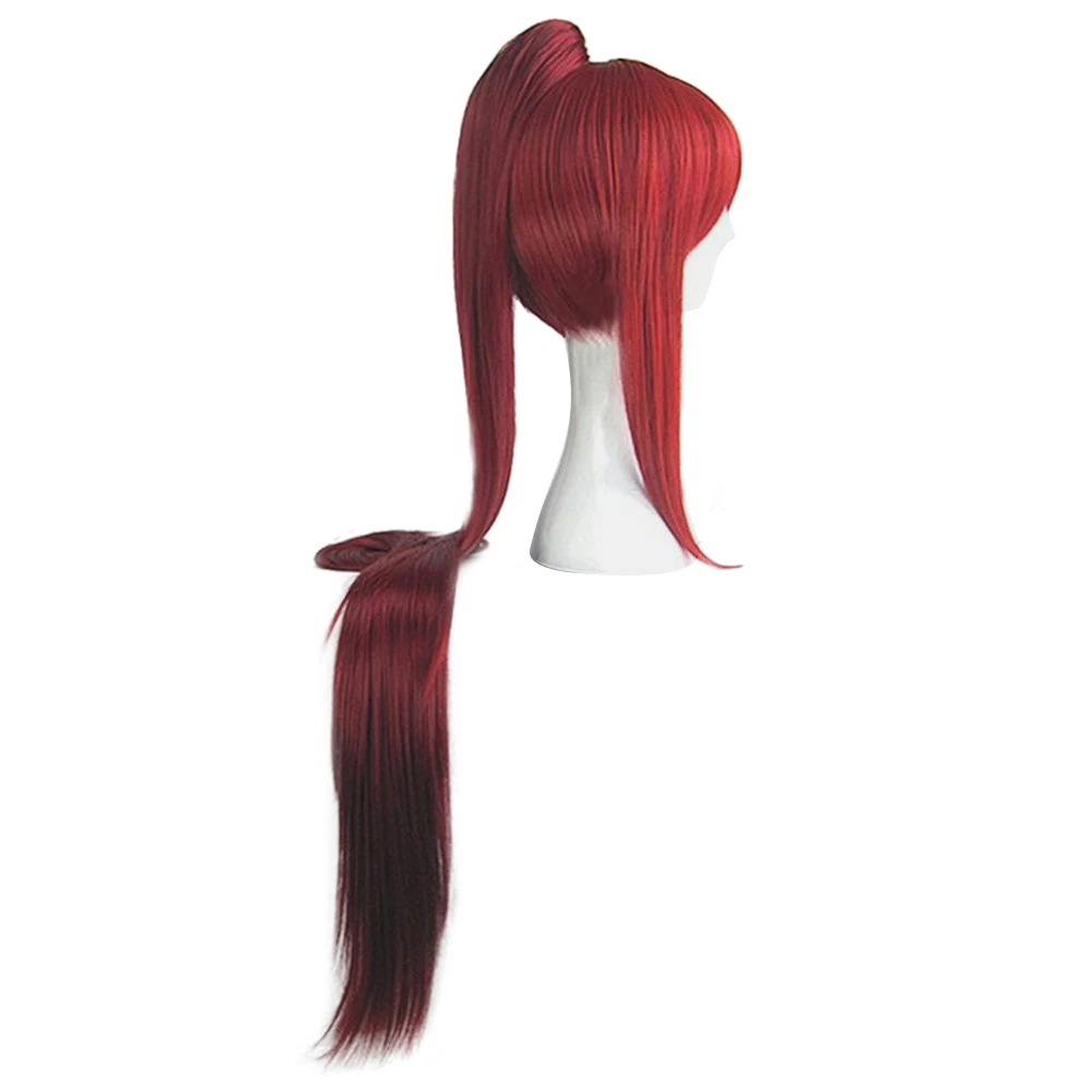 BEST QUALITY FAIRY TAIL Erza Scarlet 100CM Long Deep Red Cosplay Wig + 1 ponytail +Wig Cap