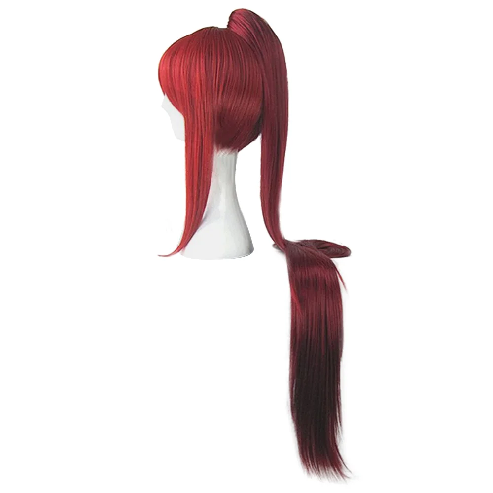 FAIRY TAIL Erza Scarlet 100CM Long Deep Red Cosplay Wig + 1 ponytail +Wig Cap