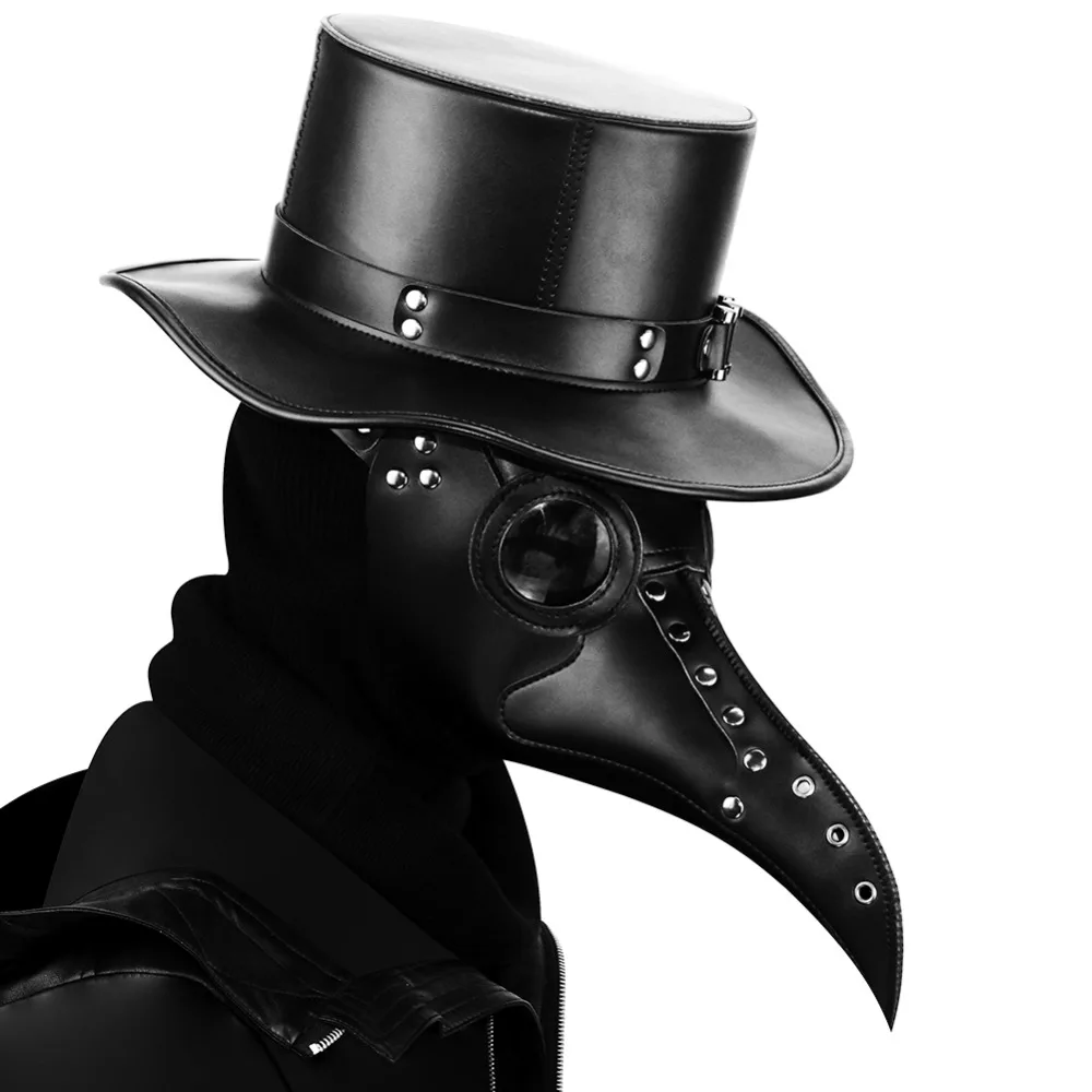 HOT SALE Gear Duke Halloween Gothic Black PU Beak Mask Steampunk Plague Doctor Retro Cool Bird Mouth Mask Ma