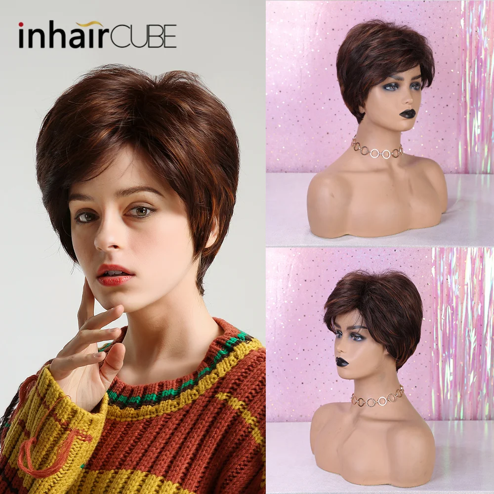 HIGH QUALITY Inhair Cube 10" Fluffy Multi-layered Short Natural Straight Synthetic Wigs for Women Light Brown Wi
