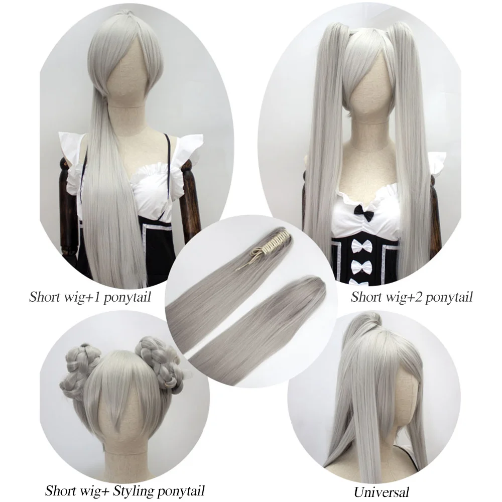 MSTN Long Straight Ponytail Clip Cosplay Lolita Wig15 Colors Red Black 3 Style High Temperature Fib