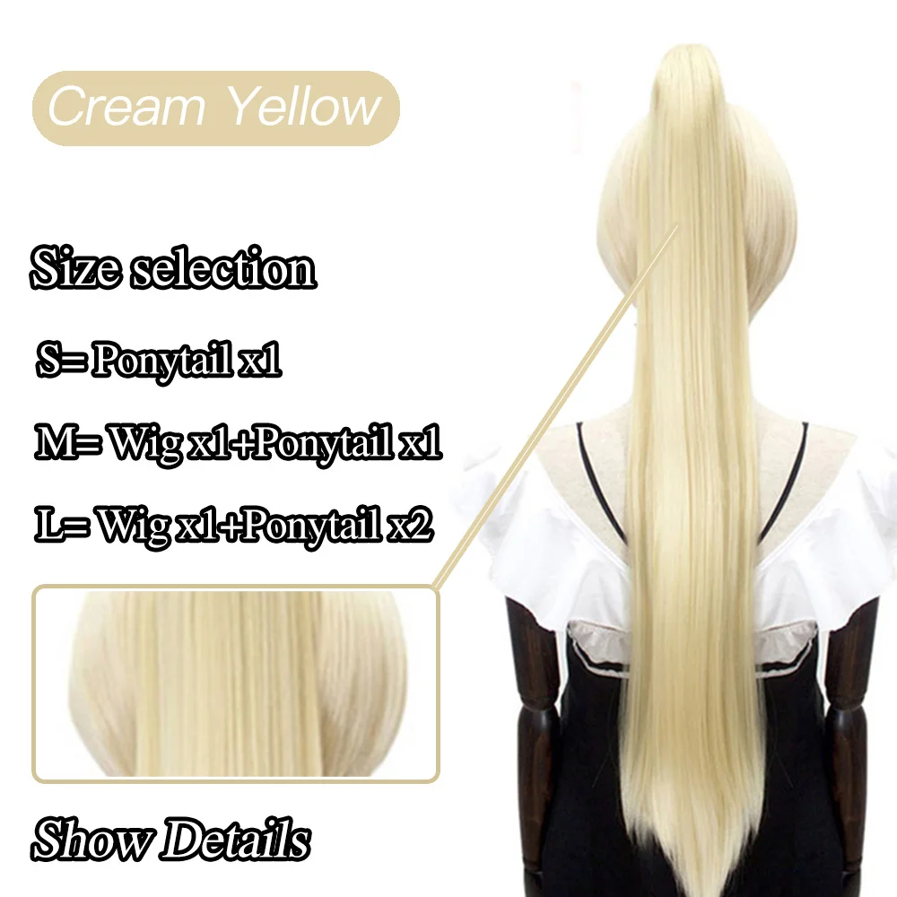HIGH QUALITY MSTN Long Straight Ponytail Clip Cosplay Lolita Wig15 Colors Red Black 3 Style High Temperature Fib