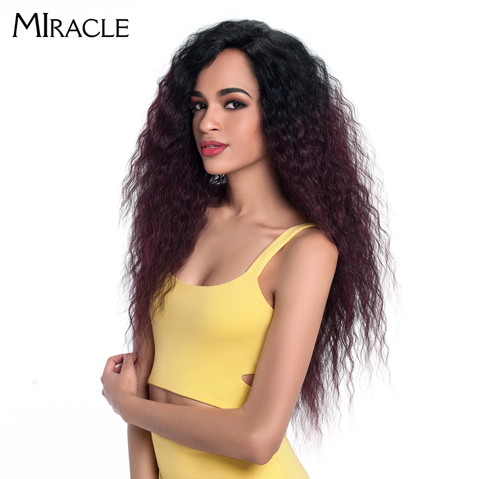 Review Miracle High Temperature Fiber Free Part Long Ombre Natural Wave Lace Front Baby Hair Wigs Syntheti