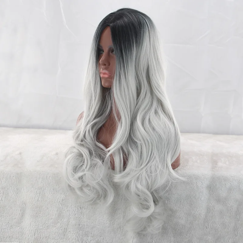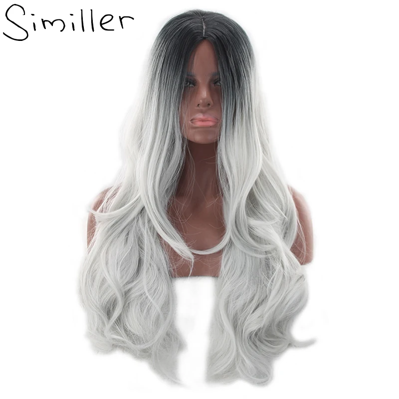 HOT Sale Similler 26" Women's Black To Grey Ombre Wig Long Curly Heat Resistant Synthetic Hair