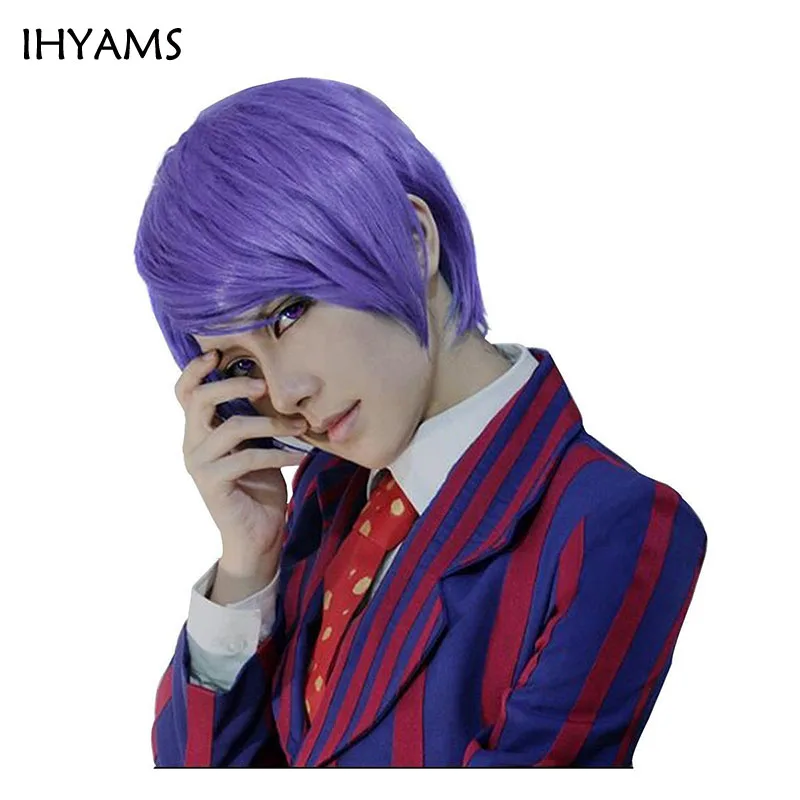 Tokyo Ghoul Shuu Tsukiyama Purple Short Synthetic Hair Cosplay Wig For Halloween Party Costume + Wi