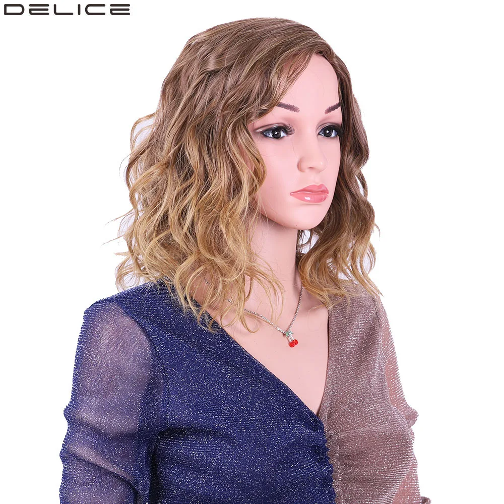 Review Delice Women's Short Curly Ombre Wig Side Part Synthetic Kinky Curl Cosplay Brown Blonde Full Wigs