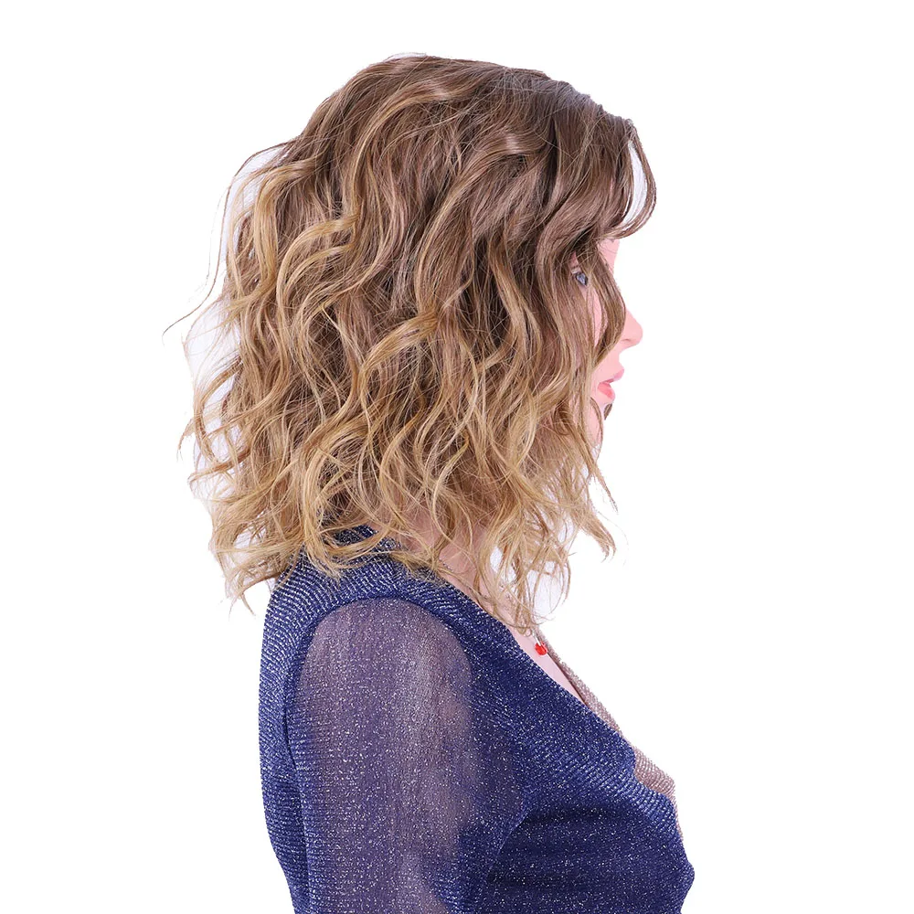 Delice Women's Short Curly Ombre Wig Side Part Synthetic Kinky Curl Cosplay Brown Blonde Full Wigs