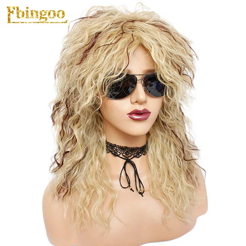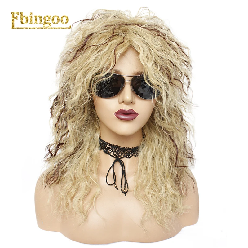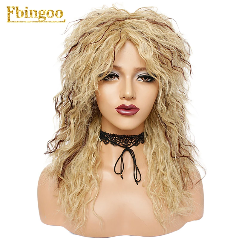 Best Quality Ebingoo 70s 80s Disco Hallween Rocker Wig Long Kinky Curly Gold Blonde Brown Synthetic Wig for Fema