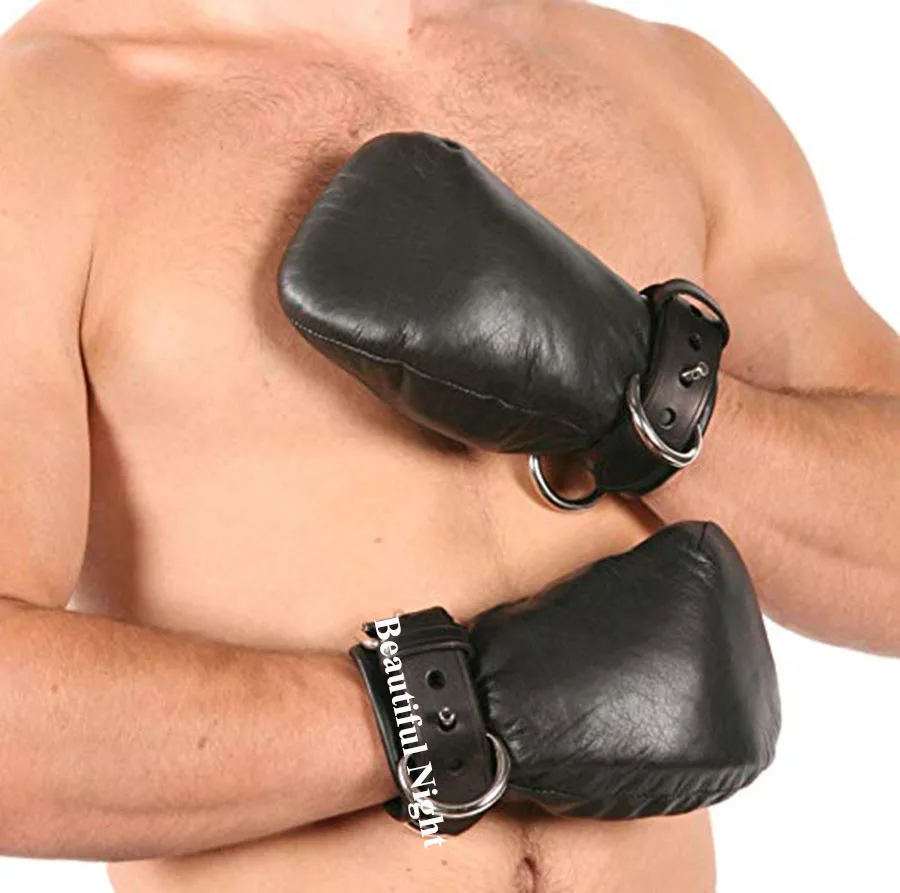 ORIGINAL Sex Bondage Fist Mitts Pony Play Soft Padded Mittens Leather Sensory Deprivation Protective GlovesA