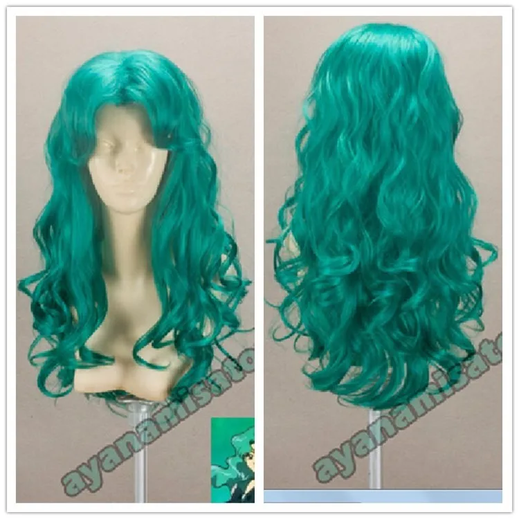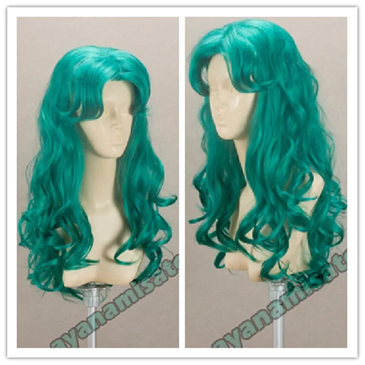 Sailor Moon Kaiou Michiru Wigs Sailor Neptune Long Green Curly Heat Resistant Synthetic Hair Cospla