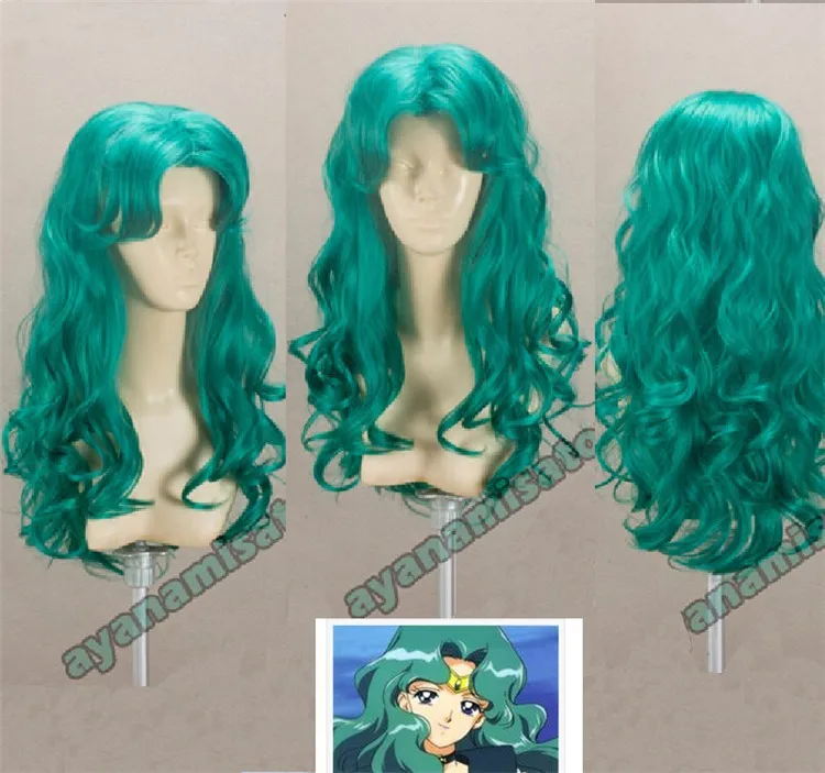 BEST Sailor Moon Kaiou Michiru Wigs Sailor Neptune Long Green Curly Heat Resistant Synthetic Hair Cospla