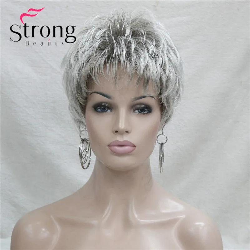 BEST SELLER StrongBeauty Short Layered Grey Silver Shag Classic Cap Full Synthetic Wig