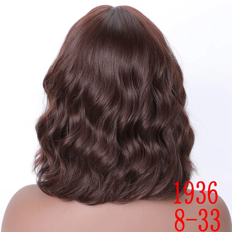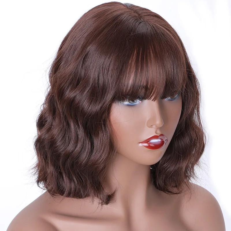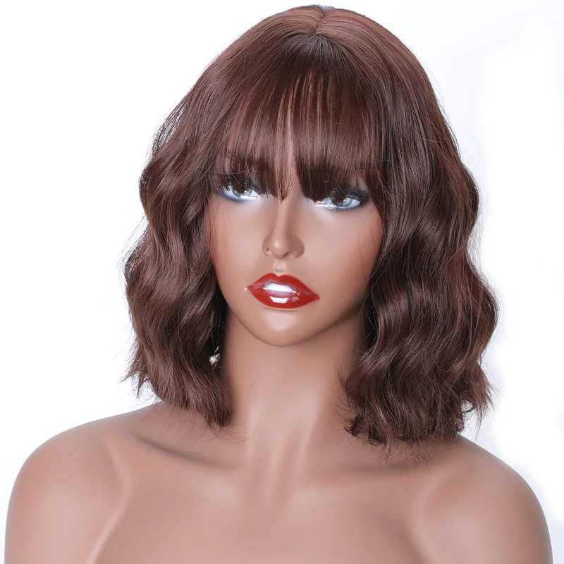 MERISI HAIR Water Wave short Synthetic Wig with Bangs Black Color High Density Natural Headline Siz