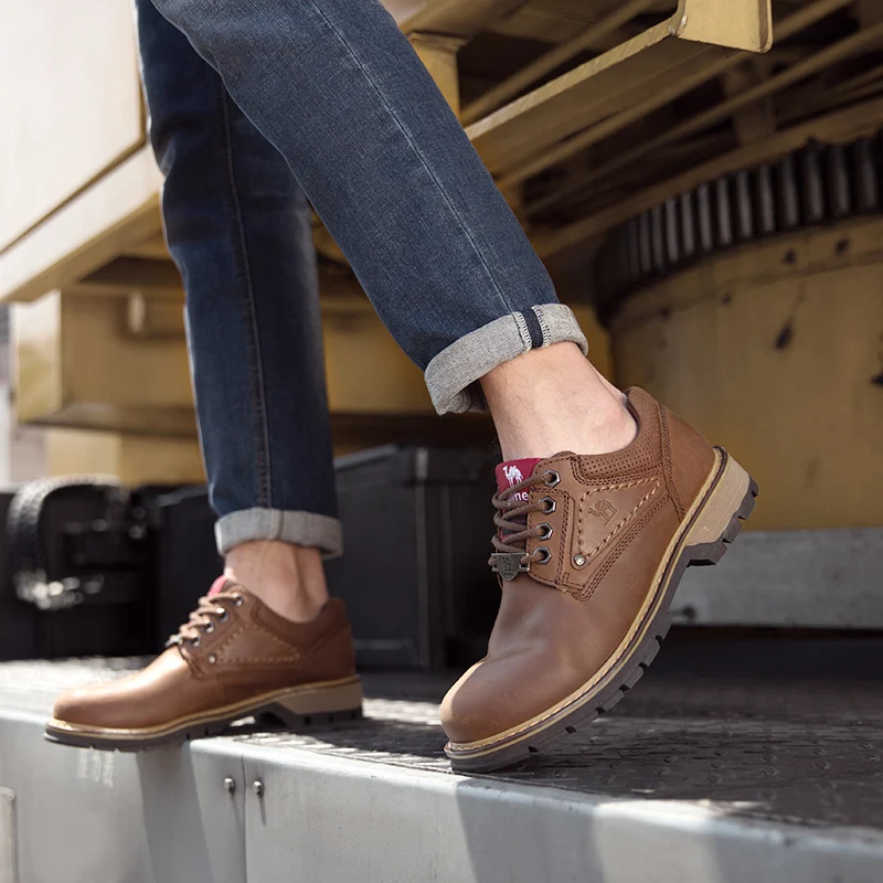 CAMEL Men Tooling Shoes Autumn Geunine Leather Martin Shoes Men's Trend Fashion Outdoor Casual Men'