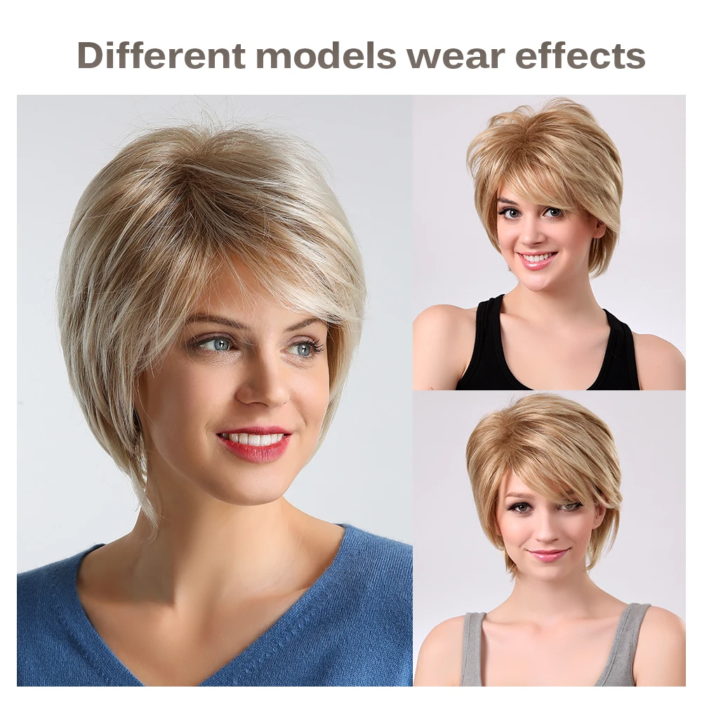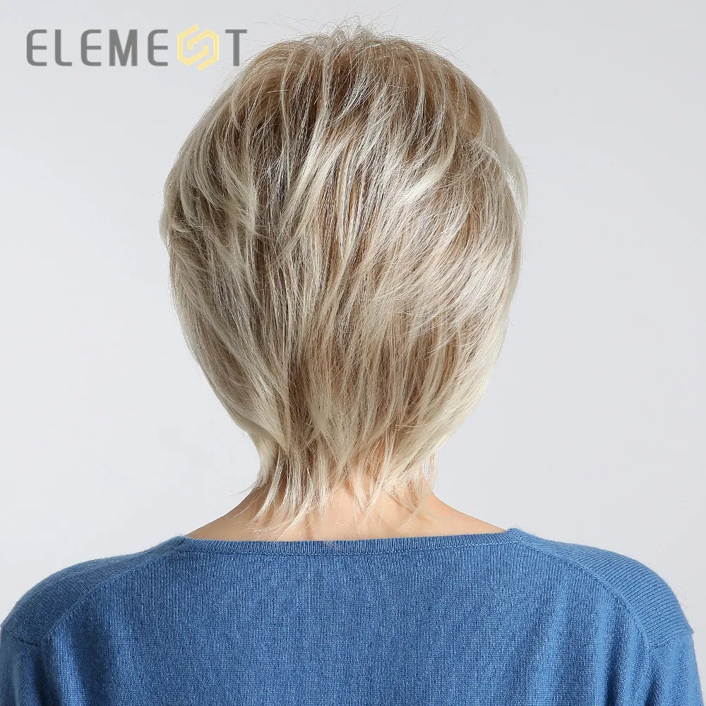 TOP ELEMENT Synthetic 6 inch Short Straight Hair Wig With Side Fringe Blonde Mix Brown Color Party Dail