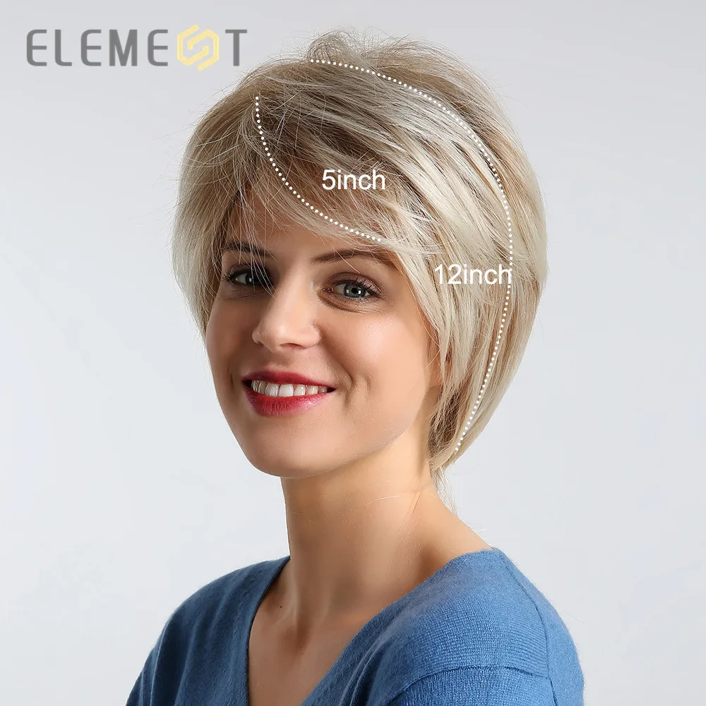 ELEMENT Synthetic 6 inch Short Straight Hair Wig With Side Fringe Blonde Mix Brown Color Party Dail