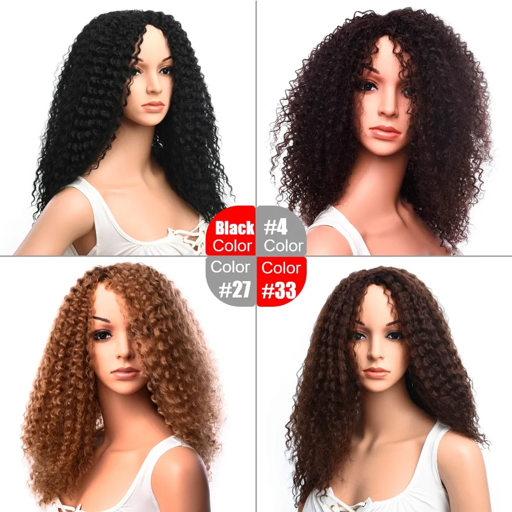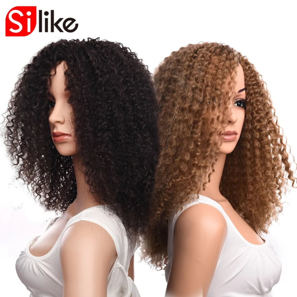 Review Top Silike Afro Kinky Curly Wigs 18 Inch Medium Brown Synthetic Long Wigs for Black Women African Deep