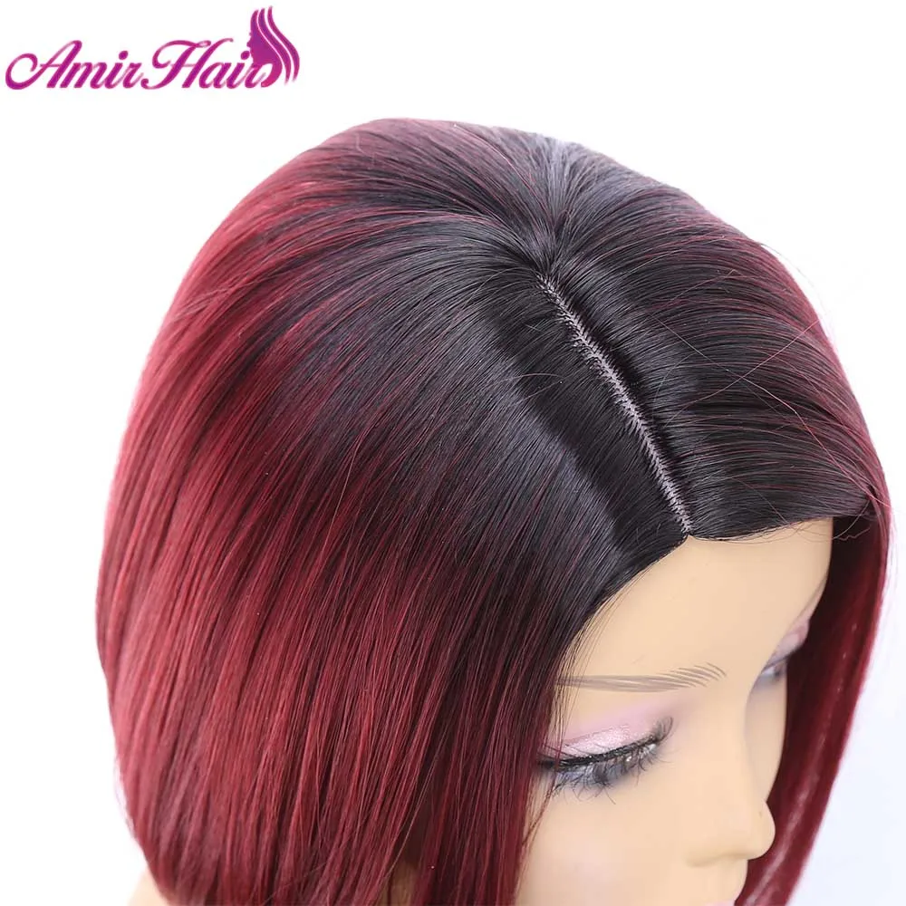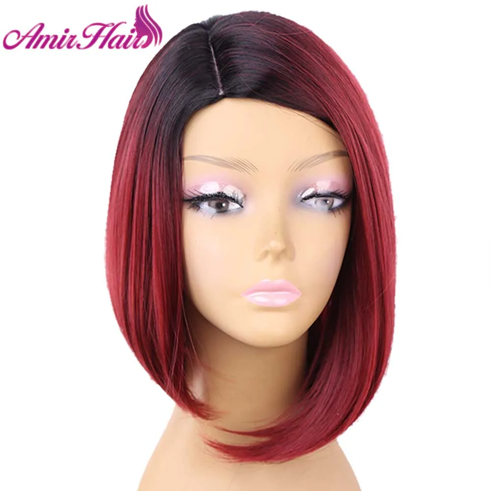 Best Amir Hair wig Bob Ombre Black Roots Red Black Wigs For Women Synthetic Wig Heat Resistant Green Blo