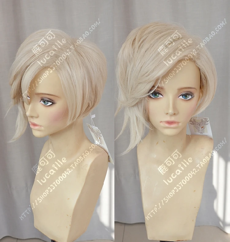 Best Quality Game OW Angela Mercy Short Linen Blonde Ponytail Heat Resistant Cosplay Costume Wig