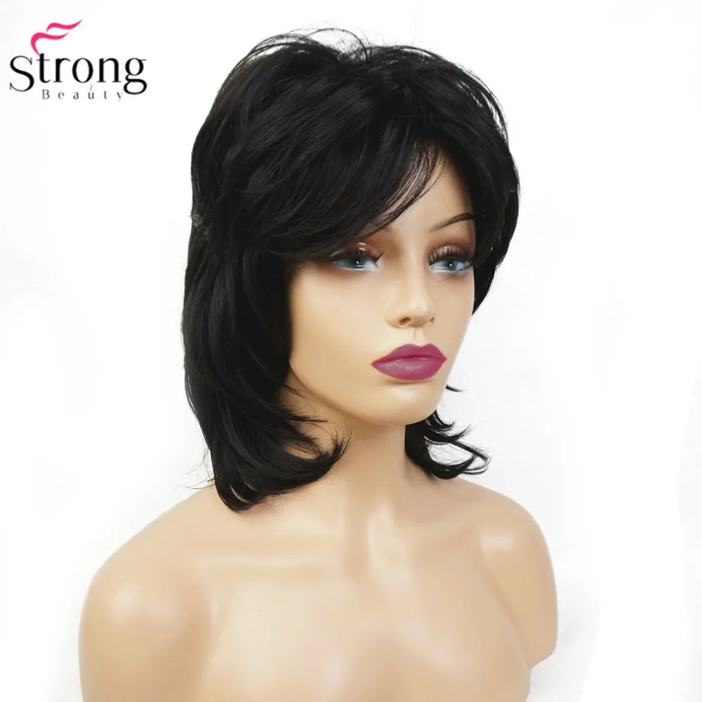 Review Top StrongBeauty Women's Synthetic Wig Black Medium Curly Hair Ombre Auburn/Blonde Hairpiece Natural Wi