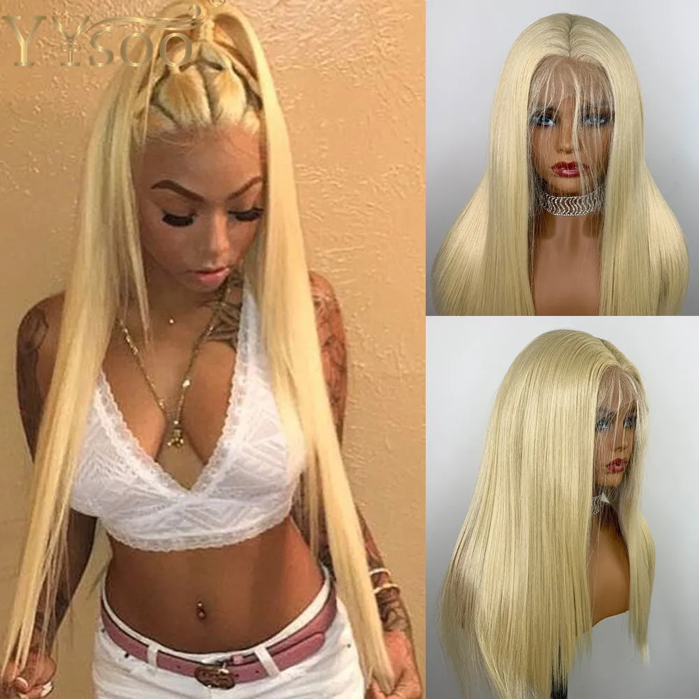 Best YYsoo 13x6 Silk Straight Fuchula Janpan Heat Resistant Lace Front Wig for Black Women Blonde Synthe