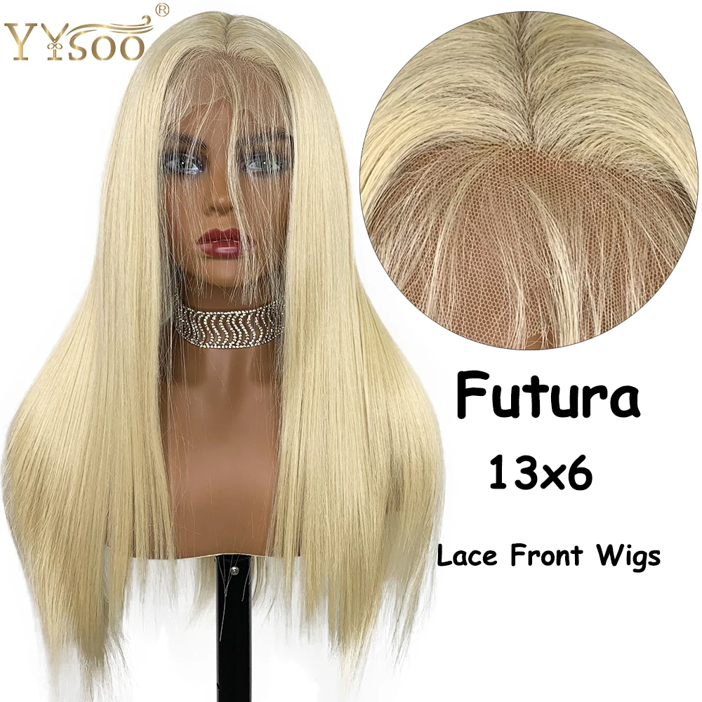 YYsoo 13x6 Silk Straight Fuchula Janpan Heat Resistant Lace Front Wig for Black Women Blonde Synthe